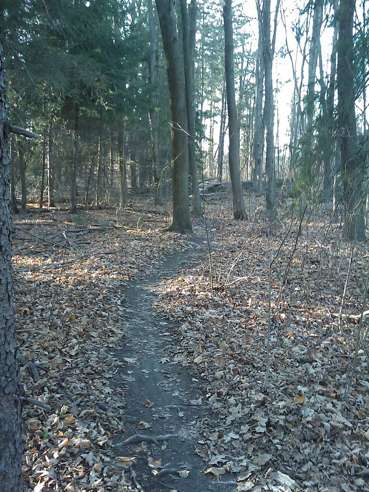 Sunday it took alot of energy to get out the door for a mountain bike ride. I waited until the absolute last minute to go. I knew I wanted to ride, but the effort required to get all the gear together for cold weather riding is a pain. I watched a quick Ironman Motivation video and that's all it took to get me up off my ass and out the door. A bit cooler out this day, but sunny and the trails were dry! I went to Hilton falls which is a great upper body workout since it is so technical with the jagged rocks and all. I felt good right off the start, however as I approached a tall deadfall tree I went to jump it and BAM I wound up on my face. I went over the bars on the very first obstacle. Well I hope this wasn't an indication of how the rest of the ride will go. This tree was just warm-up and I'm already tango'ing with potential injury. Anyhow, it took a good 20 minutes to get my grove back and the rest of the ride went reasonably smooth. At the end of the ride I discoverd that my Camelback system has a lockout valve to stop it from dripping on my leg. Wow, I've had this thing for a few years now and just figured out what the yellow tab on the nipple was for. I feel kinda dumb.